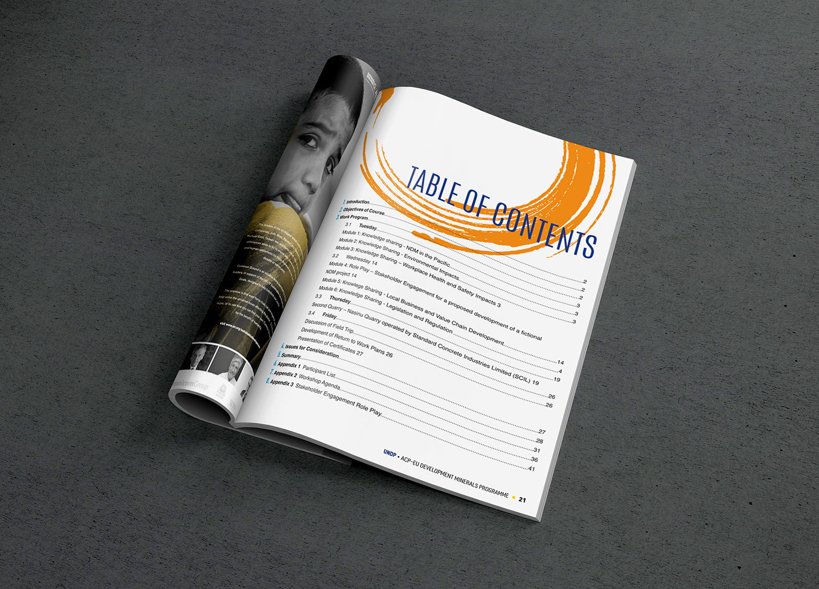 This is a program I designed for UNDP's Mineral Programme seminar. They wanted something clean and legible for a meeting of this kind, but at the same time fresh and aesthetically pleasing.