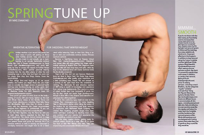 This is a feature story from their Health Issue. I tried to come up with something interesting and visually appealing. I think it worked well, especially for a magazine like HX. For legal purposes, there actually was a need for a litte Photoshop work to be done. Though, I'm sure their readership wouldn't have minded otherwise.