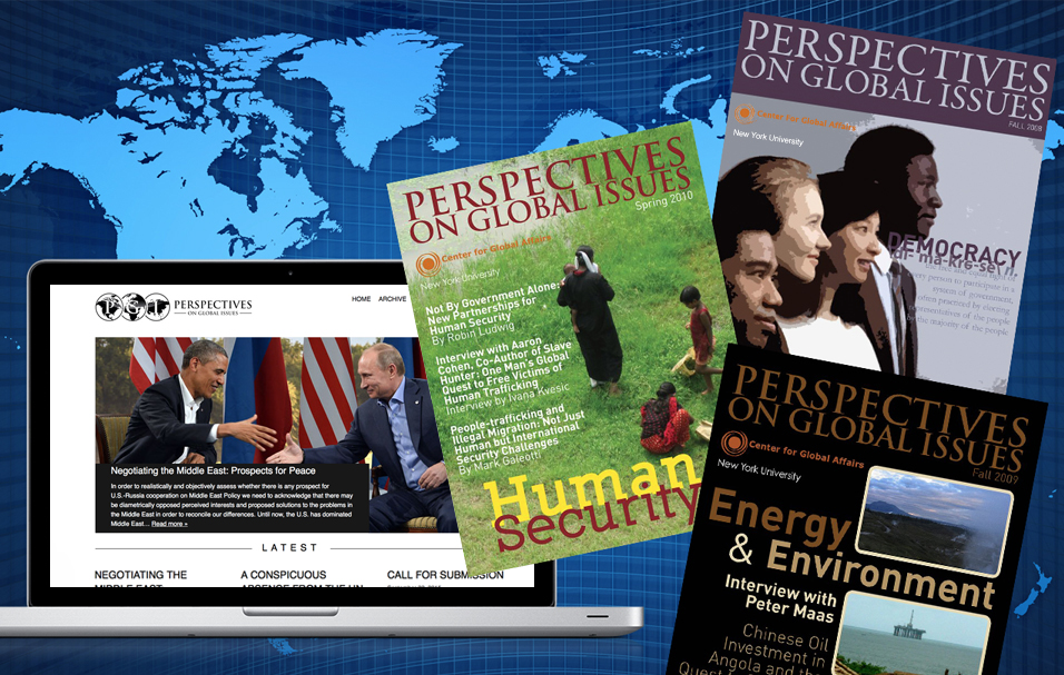 Between 2008 and 2012, I had the pleasure of serving as Design Director for NYU Center For Global Affairs' Academic Journal, Perspectives on Global Issues. As Design Director, I lead in the direction of the journal's creative, designed covers for issues, and assisted in the design of the web site.