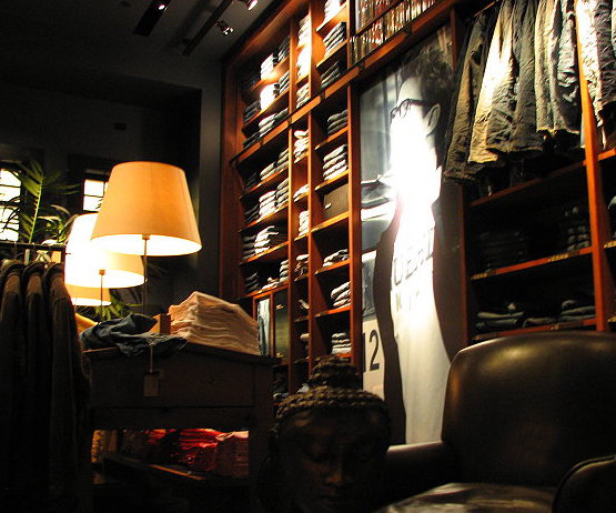 At my time at Ruehl No.925, I had the pleasure of designing rooms and setting up/implementing some great display pieces. Unveiled in Autumn of 2004, Ruehl was the fourth concept rolled out by A&F, after the namesake brand, targeting the post-collegiate demographic. It was inspired by the artistic and cultural heritage of Greenwich Village. The store itself was modeled after a Greenwich Village townhouse complete with wrought-iron fence and potted topiary. Navigating through its great maze of darkened, slickly designed multi-level rooms (including a library, lounge, study, bedrooms, living room & garage) one was treated to large framed B&W photography, bold graphics, Jackson Pollack & Willem de Kooning paintings, and various vintage artifacts.