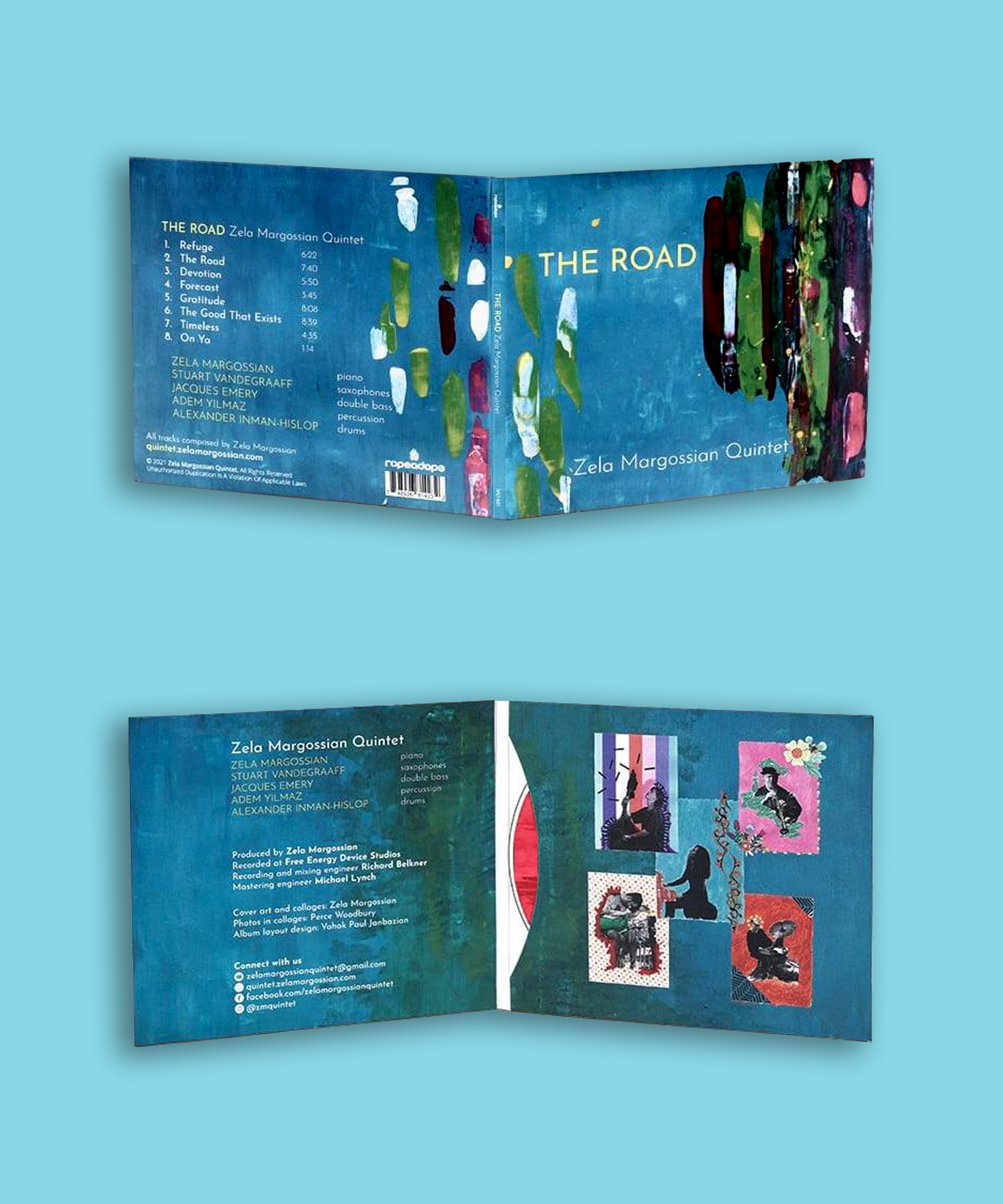 I had the oppportunity to again work with world jazz pianist, Zela Margossian on her sophomore album, The Road. She wanted to go for a more abstract look and feel for this album as opposed to the more photographic design of her previous one. I incorporated her paintings into the design and layout resulting in intense and bright visuals which perfectly compliment her music.