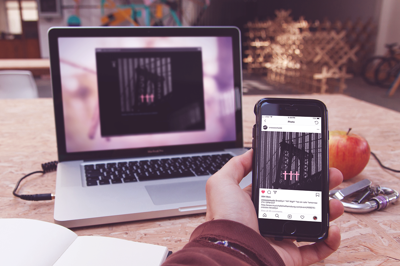 A few years back I designed this Instagram/Social Media image for darkwave/electro-rock duo, Crosses (Chino Moreno of Deftones + Shaun Lopez of Far) when they were announcing their NYC area dates. They would tease a city they were about to play with an image that resembled the cover for their debut album with a silhouette of a landmark of where they would perform along with their trademark "†††". Since they were going to play Music Hall of Williamsburg, I used the Williamsburg Bridge.