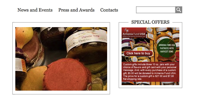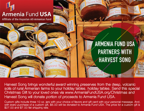 Harvest Song (Craft and Artisanal Preserves) and Armenia Fund USA partnered recently to do a great thing. For every purchase of a custom gift basket five dollars will be donated to Armenia Fund USA. I designed both the postcard and banner that is on the Harvest Song site.